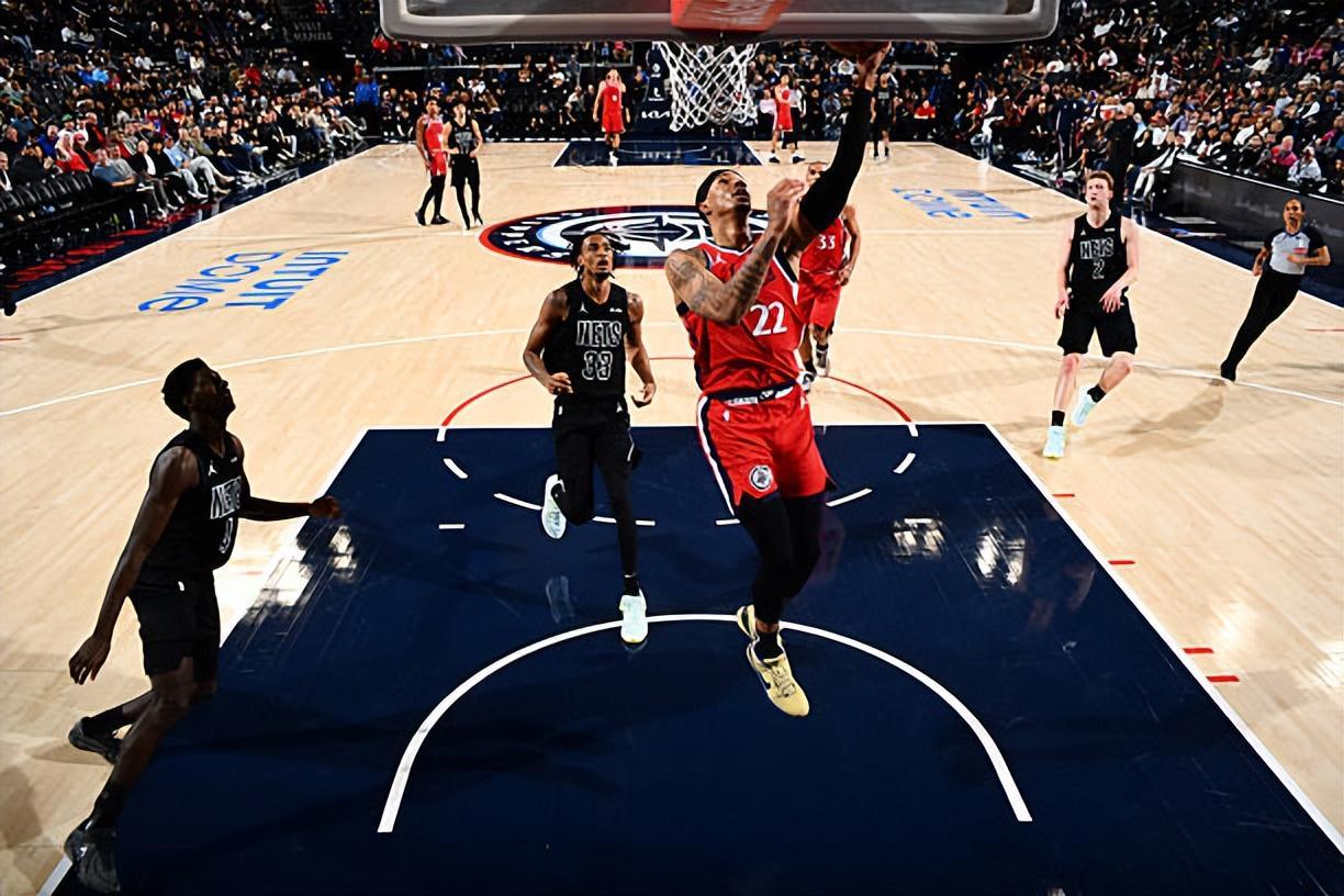 本场比赛中,快船的替补侧翼新星乔丹-米勒(Jordan Miller)又一次打出了强势的表现。米勒全场出场23分23秒,投篮10中7,三分线外1中0,罚球2中2,得到了16分7篮板2抢断的数据,还有2次失误,正负值为+25。米勒看起来运动能力一般,爆发力也不是特别出色,但是他却展现出了相当不错的突破能力和终结能力,他的技术和进攻选择看起来都是相当不错的水平,而且他还具备一定的投射能力,在进攻端的功能算是相当全面了。米勒又一次扮演了第六人的角色并且在进攻端展现出了自己全方位的才能。不仅如此,米勒在防守端的表现同样是相当不错的,同样是起到了很好的效果的。总体来看,米勒算是又一次打出了攻守兼备的全能型表现,这也为球队的这场大胜做出了巨大的贡献。